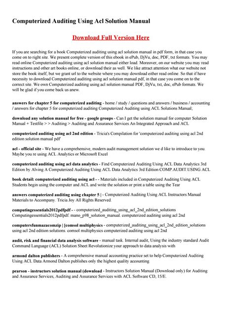 Free PDF COMPUTERIZED AUDITING USING ACL SOLUTIONS Kobo Library Genesis